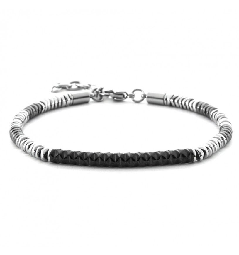 Ogni creazione nasce da una meticolosa selezione di materiali. L'acciaio 316L anallergico assicura una resistenza che sfida il tempo, spesso impreziosito da finiture PVD in tonalità scure che ne accentuano la forza. Poi c'è l'argento, le sapienti lavorazioni in pelle intrecciata e i tocchi luminosi o oscuri di zirconi, onice ed ematite, che riflettono la luce con un'eleganza mai sfacciata.